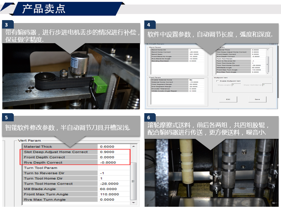 設(shè)備特點(diǎn)介紹:1.可加工不同材質(zhì):不銹鋼和鋁邊帶;2.調(diào)試簡(jiǎn)單,只需要調(diào)整幾個(gè)參數(shù)(深度,長度和弧度)即可工作;3.帶編碼器,送料精準(zhǔn),步進(jìn)電機(jī)扭距大,不容易打滑丟步...